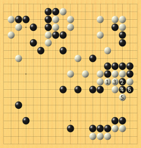 白①オサエ、黒②アテ、白③ツギとなりました。
